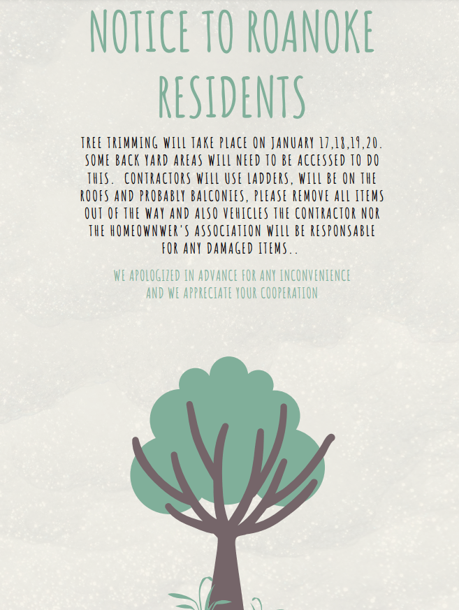 Tree Trimming Roanoke HOA News January 18, 2022January 18, 2022 Share this:Tweet Click to email a link to a friend (Opens in new window) Email Like Loading... Published January 18, 2022January 18, 2022