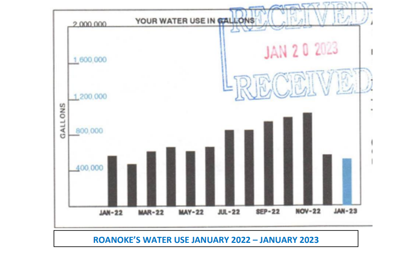 Please find attached SAMPLE water bills. These samples were prepared by Utilibill.com using a sample charge for water and sewer of $6,666.76. Water billing at Roanoke will start in the next 10 days with the first bill due April 1 and a 5 day grace period. Late fees will not start accruing until May to allow ample time for notice and making payment arrangements.